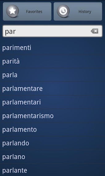 Marque os significados favoritos para consultas futuras e veja o histórico de pesquisas. No total o Dicionário Italiano Português para Android tem mais de 55 mil verbetes, mas algumas palavras básicas ficaram de fora. Esperamos que sejam incluídas nas próximas atualizações.